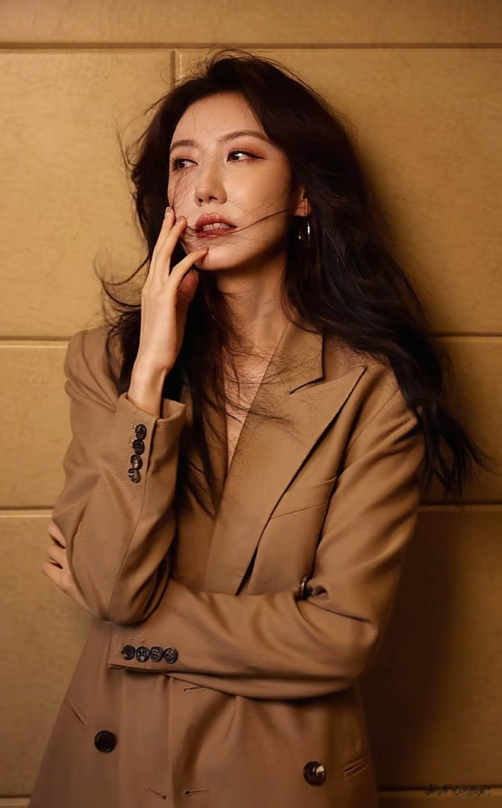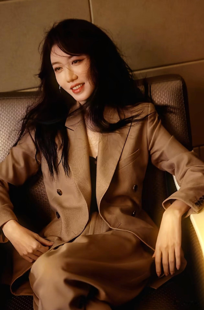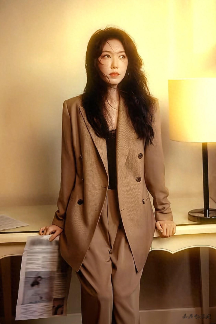 43岁高露最新穿搭: 微卷发+西服套装, 帅到犯规, 美到差点认不出